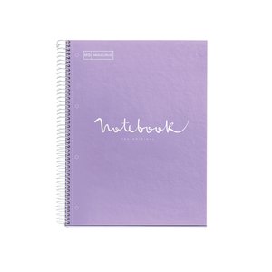 Cuaderno con cubiertas de cartón forrado plastificado brillante, papel extra opaco de 90 g/m² microperforado, con certificado FSC®, 1 banda de color en el lateral de sus hojas a juego con la portada, y 4 taladros para poder archivar en cualquier carpeta de anillas. Un bloc de la gama Emotions con colores que suscitan diferentes emociones.