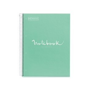 Cuaderno con cubiertas de cartón forrado plastificado brillante, papel extra opaco de 90 g/m² microperforado, con certificado FSC®, 1 banda de color en el lateral de sus hojas a juego con la portada, y 4 taladros para poder archivar en cualquier carpeta de anillas. Un bloc de la gama Emotions con colores que suscitan diferentes emociones.