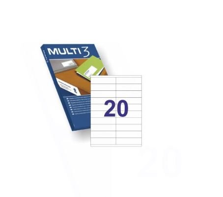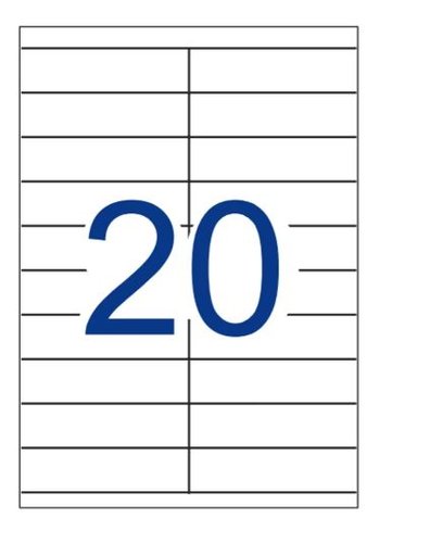 Etiquetas blancas cantos rectos tamaño 105,0 x 29,0 mm con adhesivo permanente para múltiples usos. Pack con 100 hojas (2.000 etiquetas).